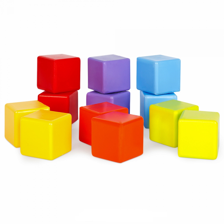 Двенадцать разноцветных кубиков — незаменимый набор в детской коллекции игрушек малышей первого года жизни. Игра с таким педагогическим материалом развивает координацию движений; цветовое восприятие и пространственное мышление ребенка. Построить башню; разложить по цветам или посчитать общее количество предметов — вот несколько идей; как можно занять малыша с помощью кубиков. Грань кубика 4 см