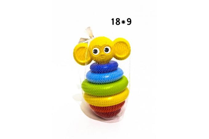 Веселый Ушастик венчает эту модель пирамидки-бочки. Глядя на этого необычного чудо-зверя губы сами растягиваются в улыбке. Ваш малыш с ним подружится!