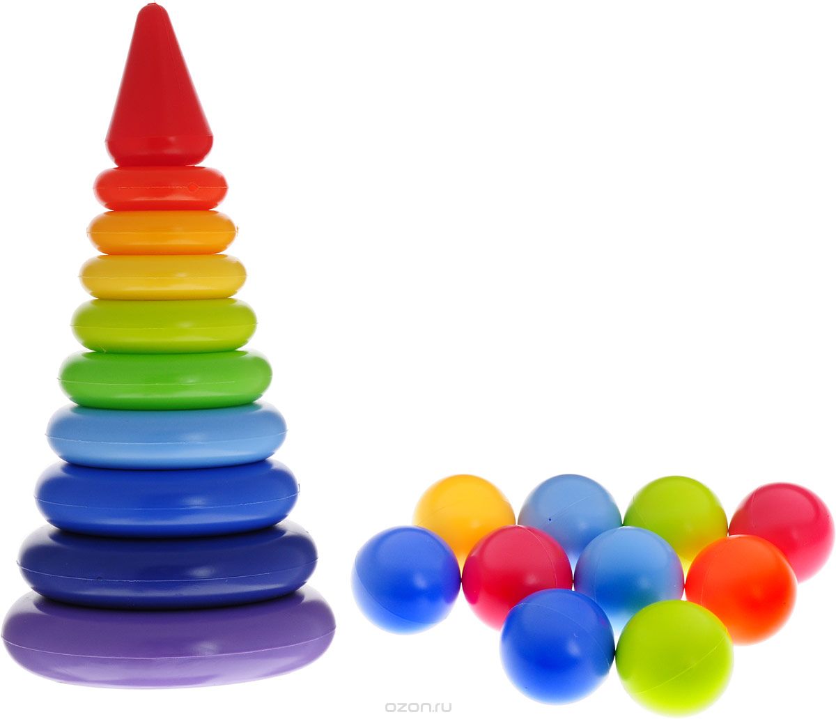 Развивающий набор «Радуга» объединяет в себе игрушки для обучающих и подвижных игр; помогая сделать досуг активного малыша разнообразным и интересным. В процессе сборки большой красивой пирамиды непоседа научится быть усидчивым и аккуратным; запомнит различные цвета и размеры. А в награду за отличную работу его будут ждать яркие разноцветные мячики; с которыми можно просто играть или наполнить ими небольшой бассейн — для самого веселого времяпрепровождения!