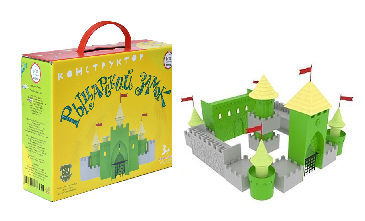 "Рыцарский замок" от компании "Росигрушка" - это отличный детский конструктор; который ребенок сможет собрать из 50 деталей имеющихся деталей. На коробке есть несколько изображений; глядя на которые; ребенок сможет собрать определенные модели замков; однако необязательно руководствоваться лишь изображениями; ведь у ребенка есть еще и своя фантазия.