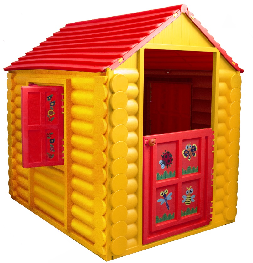 Дизайн домика полностью копирует настоящий бревенчатый дом, где каждое бревнышко выделяется, двери и окошки открываются.