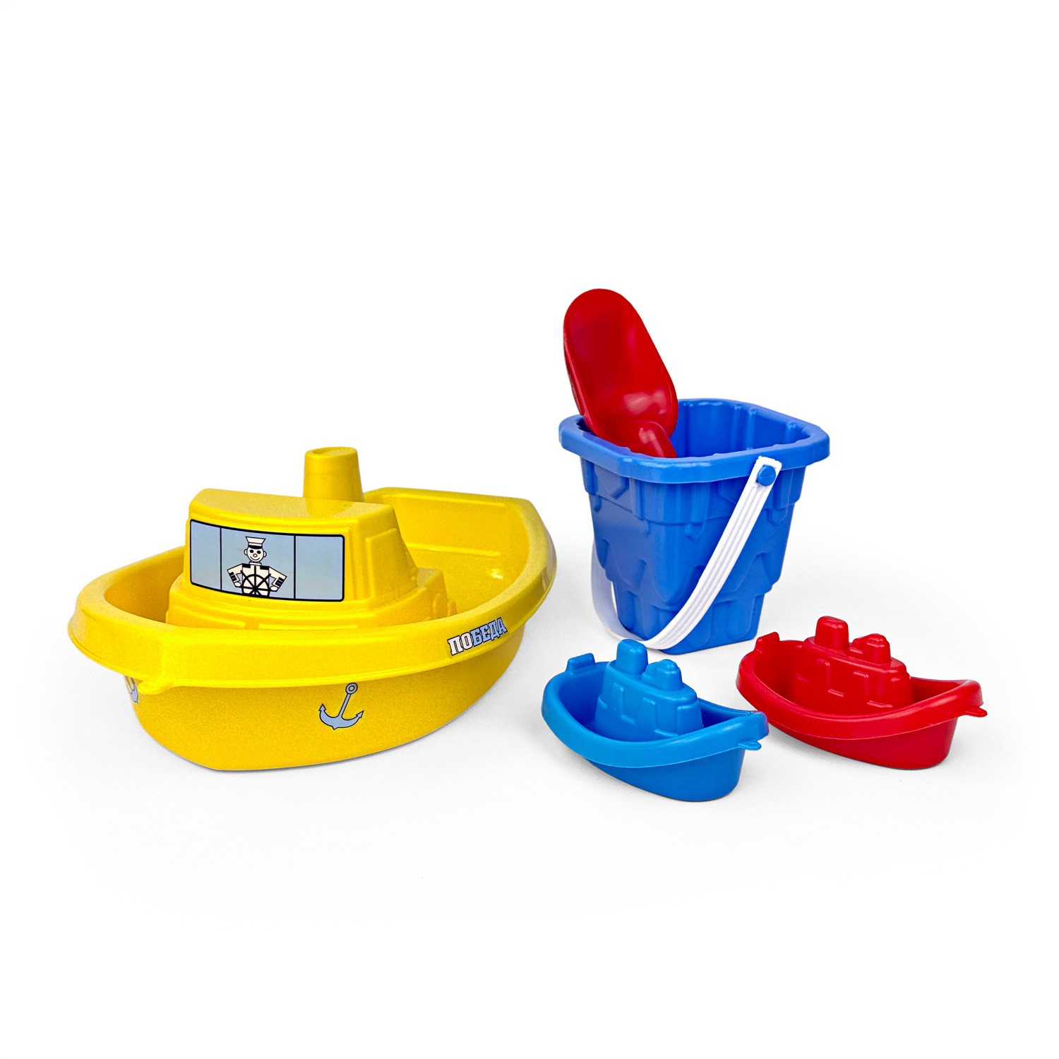 Состав: катер "Победа", ведро детское "Башня", совок, кораблики "Радуга" 2 шт. Игры с песочными наборами способствуют развитию воображения, мелкой моторики и координации движений, знакомят малыша с окружающим миром.