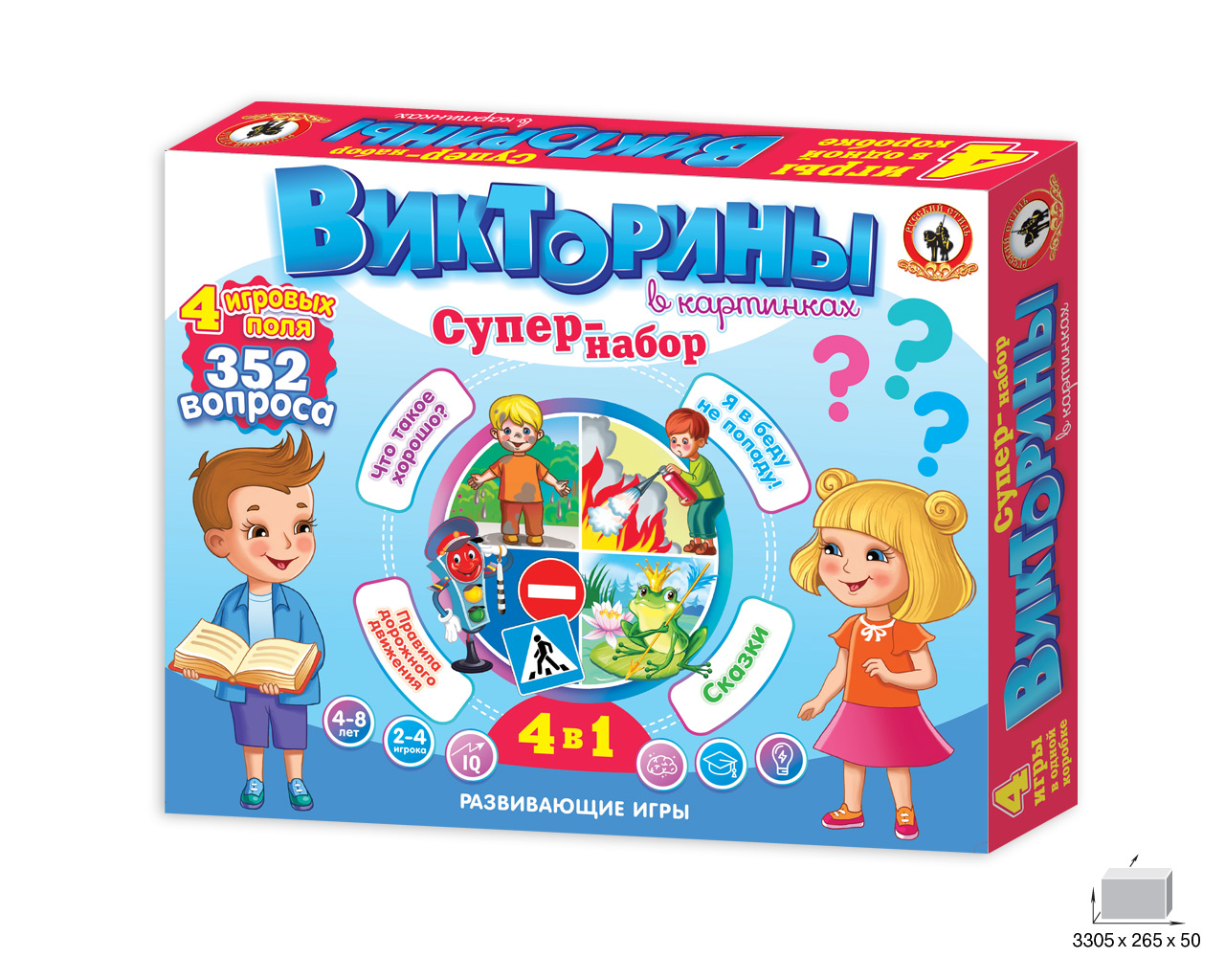 В этой коробке вы найдёте 4 красочные викторины в картинках; которые познакомят детей с правилами дорожного движения для пешеходов; велосипедистов и водителей; с сигналами светофора и дорожными знаками; основами ОБЖ; героями сказок; а также в занимательной форме на наглядных примерах объяснят малышам; что такое хорошо