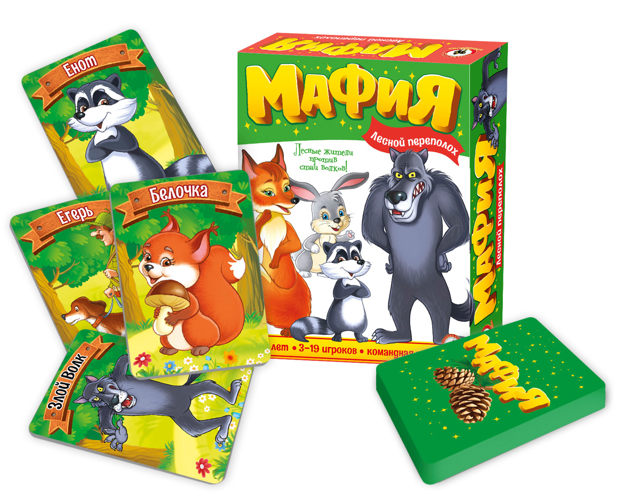 Этот вариант всеми известной игры «Мафия» создан специально для детей младшего возраста. Игрокам предстоит стать участниками таинственной лесной истории: в лесу разбушевалась стая волков, и лесные звери сильно напуганы. Удастся ли Егерю призвать к ответу злых хищников, а добрым зверюшкам перестать дрожать от страха по ночам и вернуться к прежней весёлой и беззаботной жизни. Лесные звери против стаи волков, кто же победит? ¶Игра подойдет для группы детей от 6-18 человек в возрасте 6-ти лет и старше и станет отличным развлечением на празднике.¶Карты – 18 шт. правила.