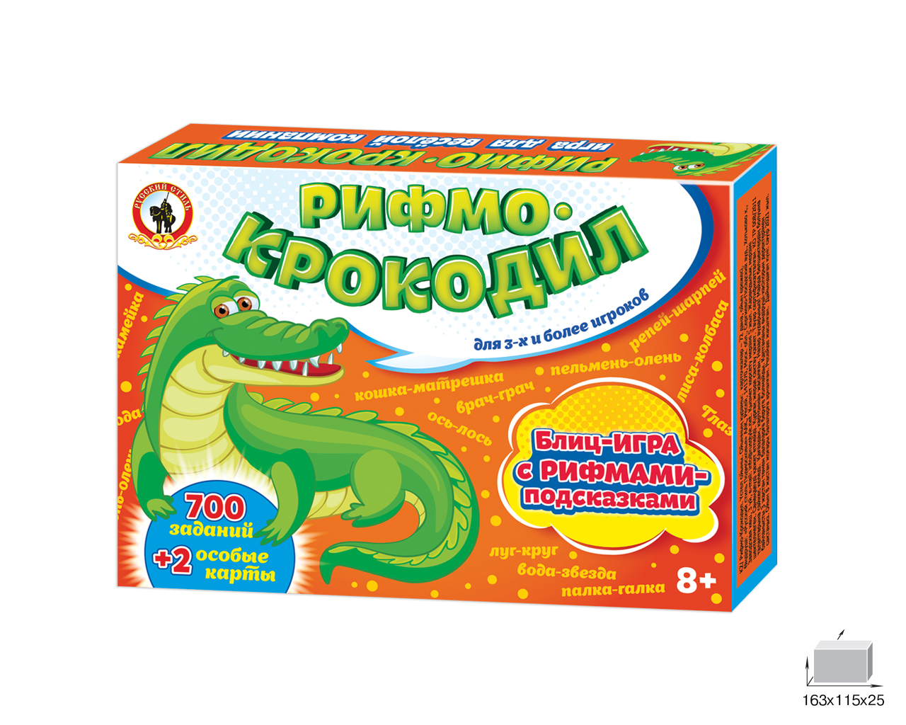 Рифмо-крокодил – это динамичный и азартный блиц-вариант игры; который превратит любую встречу друзей в незабываемый весёлый праздник. За отведенное время участникам предстоит отгадать; как можно больше слов; используя рифмы-подсказки. Игрок называет первое слово рифмы вслух; а второе слово показывает с помощью жестов. Выигрывает тот; кто отгадал больше всех рифм. Игра развивает смекалку; воображение; артистизм; быстроту реакции и мышления.