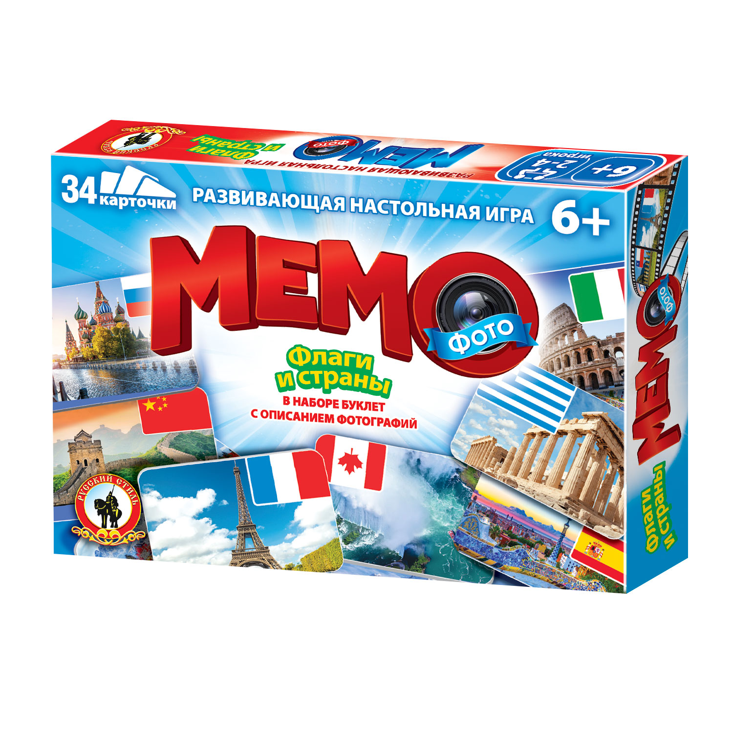 Мемо - увлекательная игра для развития памяти и внимания. Карточки выкладываются на столе рядами рубашкой вверх, в свой ход игрокам необходимо открыть две одинаковые карточки. Выигрывает тот, кто наберет больше всего парных карточек. В мире существует огромное количество разнообразных стран, со своей историей и культурой. Каждая страна имеет свою история возникновения флага. На карточках изображена одна из основных достопримечательностей страны и ее флаг. В буклете краткое описание флага и название столицы. Познакомьтесь с одним из важнейших символов разных стран вместе с нашим мемо! В наборе 34 карточки, буклет с описанием фотографий. Для 2-4 игроков. Возраст 6+. Материал: картон, бумага.