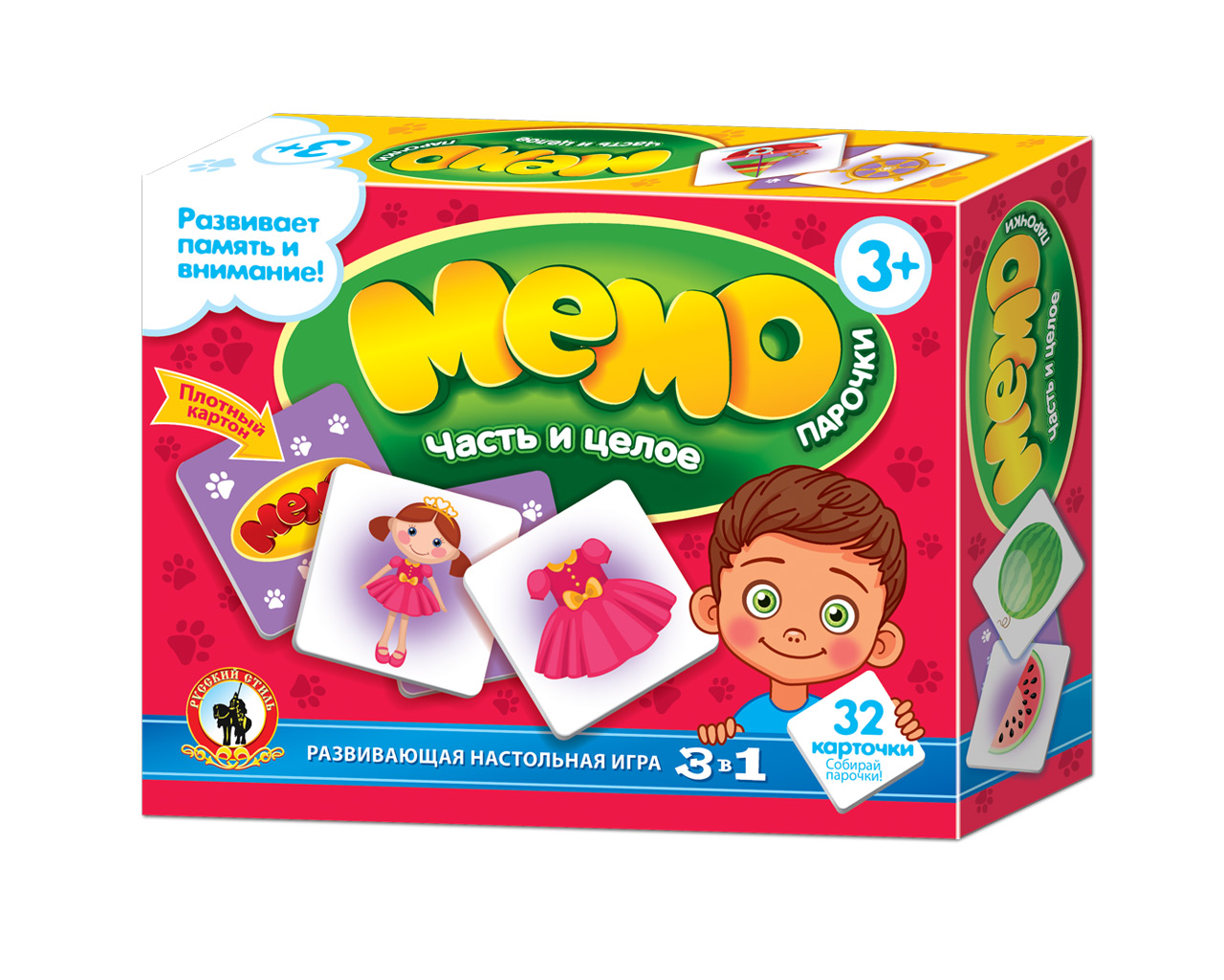 В комплекте 16 пар карточек: на одной карточке изображен целый предмет; на второй – его часть.