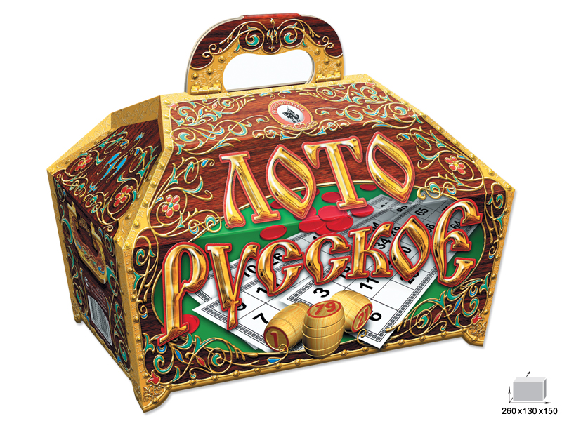Лото Русское в яркой подарочной упаковке, оформленной в стиле старинного ларца, станет хорошим подарком для Вас и Ваших друзей! Эта старинная азартная игра с деревянными бочонками завоевала большую популярность у детей и взрослых. Игра для детей от 6 лет. Состав игры: • Игровые карточки – 24 шт. • Бочата с числами – 90 шт. • Маркеры – 150 шт. • Мешок – 1 шт. • Правила игры