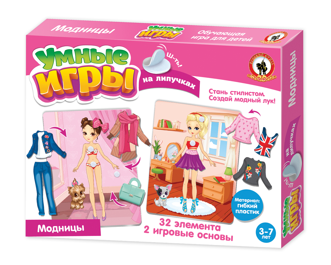 Серия «Умные игры на липучках» – это игры для развития воображения; логического мышления; а также творческих способностей ребенка. Детям предстоит подобрать наряды для Модниц и пофантазировать куда отправятся героини: на прогулку; в гости или в кафе?