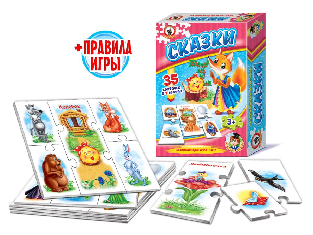 Игра «Сказки» познакомит ребёнка с некоторыми персонажами сказок как русских народных, так и зарубежных авторов. Ребёнок научится обобщать картинки и распределять их по группам. Правила игры просты, увлекательны и содержат несколько вариантов игр разного уровня сложности, направленных на раз- витие памяти, внимания и речи ребёнка.