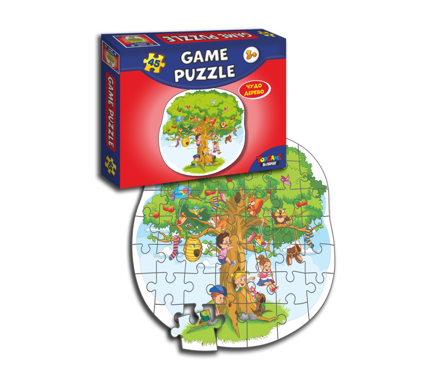 Игровой пазл "Чудо-Дерево" создан по мотивам произведения о необычном дереве, на котором растут чулки да башмаки.