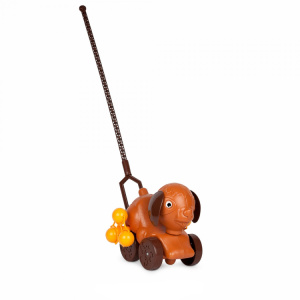 Такой добродушный игрушечный щенок вполне может стать первым домашним любимцем вашего ребенка. С ним малышу будет легче делать первые шаги и веселее гулять в любую погоду — каталка снабжена бубенчиками; которые звенят при движении; как уже знакомые погремушки. Устойчивые колеса помогают держать равновесие. При желании «поводок» можно снять; и Барбос становится домашней игрушкой без лишних мелких деталей.