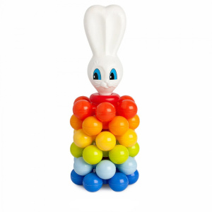 Эти пластмассовые игрушки отличаются от привычных пирамидок — привычные гладкие колечки заменены в них на колечки с шариками; а вершина игрушки представляет собой мордочку зайчика. Несмотря на то; что все шесть колец одинакового размера; собрать эту пирамиду не так-то просто. Ведь шарики на каждом следующем кольце должны попасть строго между шариками предыдущего ряда. Но чем сложнее задача; тем интересней ее выполнение.