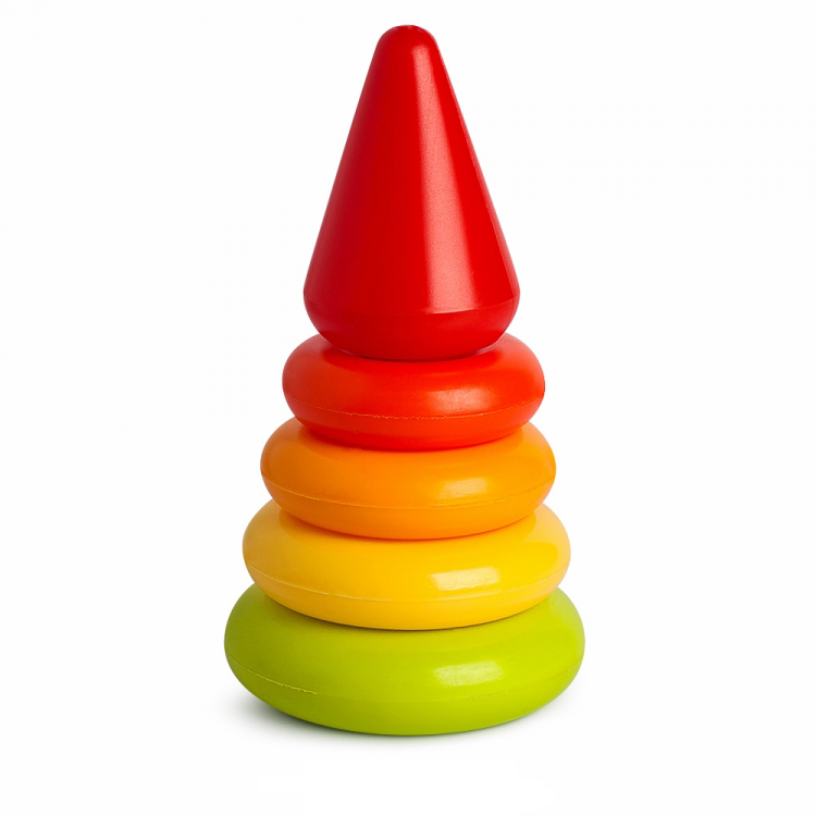Еще одно воплощение классической пирамидки. Четыре разновеликих колечка; нанизанных на прочную основу; венчает небольшая конусовидная макушка. Такую крошку можно взять куда угодно.