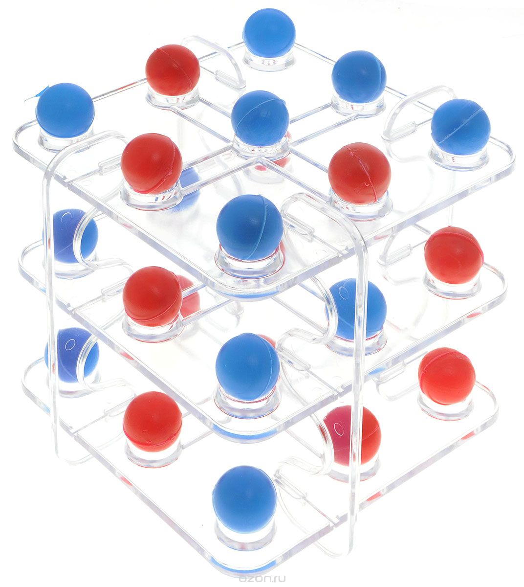 «Крестики-нолики 3D» – новейшая версия классической игры. Благодаря оригинальной объёмной конструкции игра даёт возможность расширить вариативность игры. Она развивает пространственное мышление, умение ориентироваться в трёхмерном пространстве и планировать свои действия. Игра предназначена для 2 игроков и рекомендуется для детей от 5 лет. Но и взрослым она не менее интересна. Конструкция игры сборно-разборная. На обучающем этапе можно играть на отдельно взятых пластинах игрушки, затем усложнять игру, собрав её. Тогда в ней будут участвовать все три яруса конструкции. Выигрывает не тот, кто первым соберёт линию, а тот, кто в конце игры закроет больше линий шариками своего цвета. Состав игры: • Игровые пластины – 3 шт. • Боковой крепёж – 4 шт. • Шарики 2 цветов по 15 шт. каждого вида