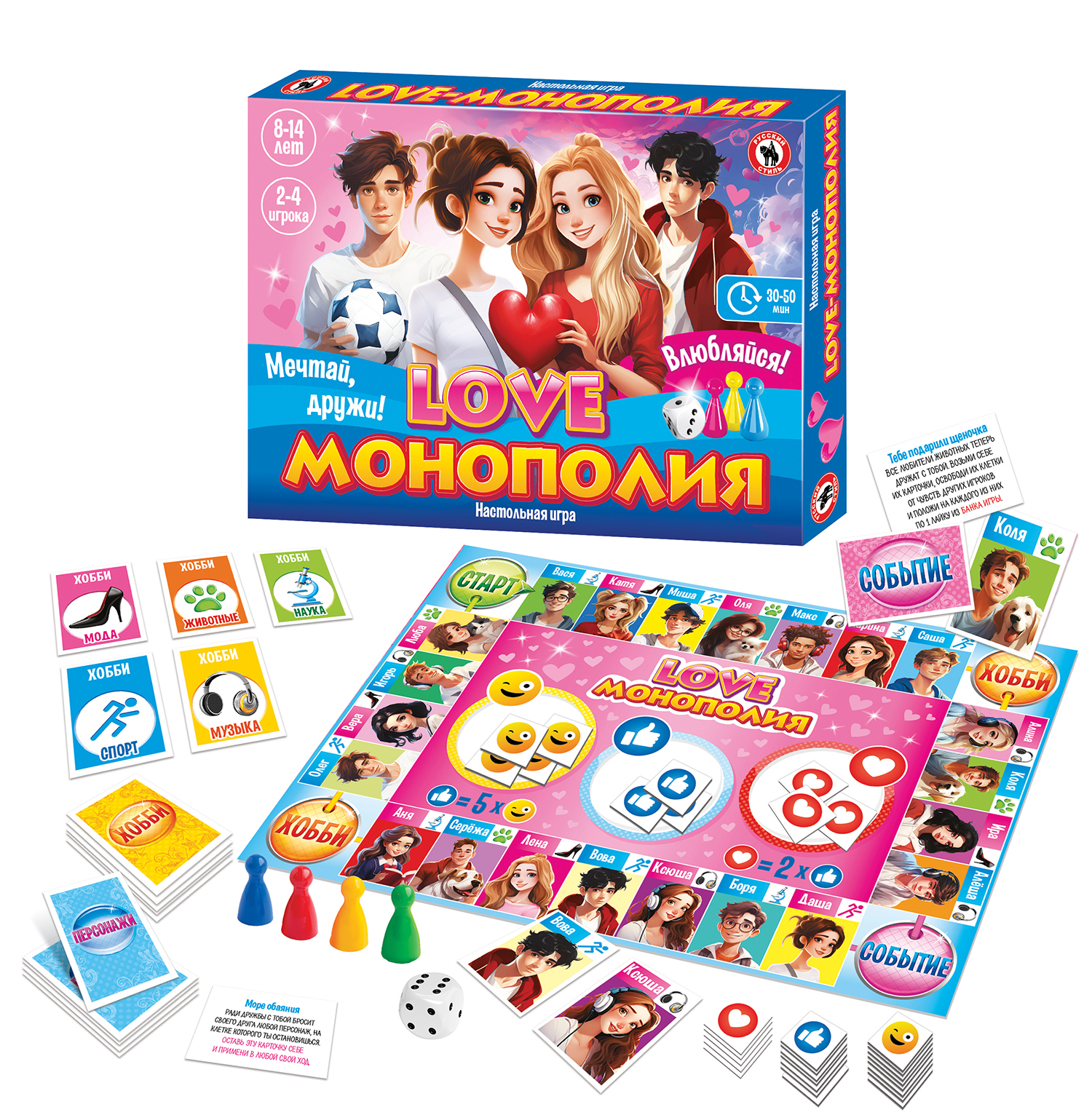 Мечтаешь быть в центре внимания, влюбляться, заводить новых друзей? Тогда эта игра принесет массу удовольствия: дружи и влюбляй в себя персонажей на игровом поле, выкладывай на их клетки смайлики, лайки и сердечки, и получай их чувства в ответ. Игра будет интересна и мальчикам, и девочкам. В наборе карточки с персонажами, каждый из которых имеет свое хобби: музыка, спорт, животные, наука, мода. Игрокам предстоит заводить новые знакомства, собирать смайлики и лайки и побороться за место в центре внимания. Количество игроков: 2-4 Возраст: 8-14 лет Состав игры: игровое поле, кубик, фишки – 4 шт., карточки – 65 шт., смайлики/лайки/ сердечки – 234 шт., правила игры Материал: картон, бумага, пластмасса