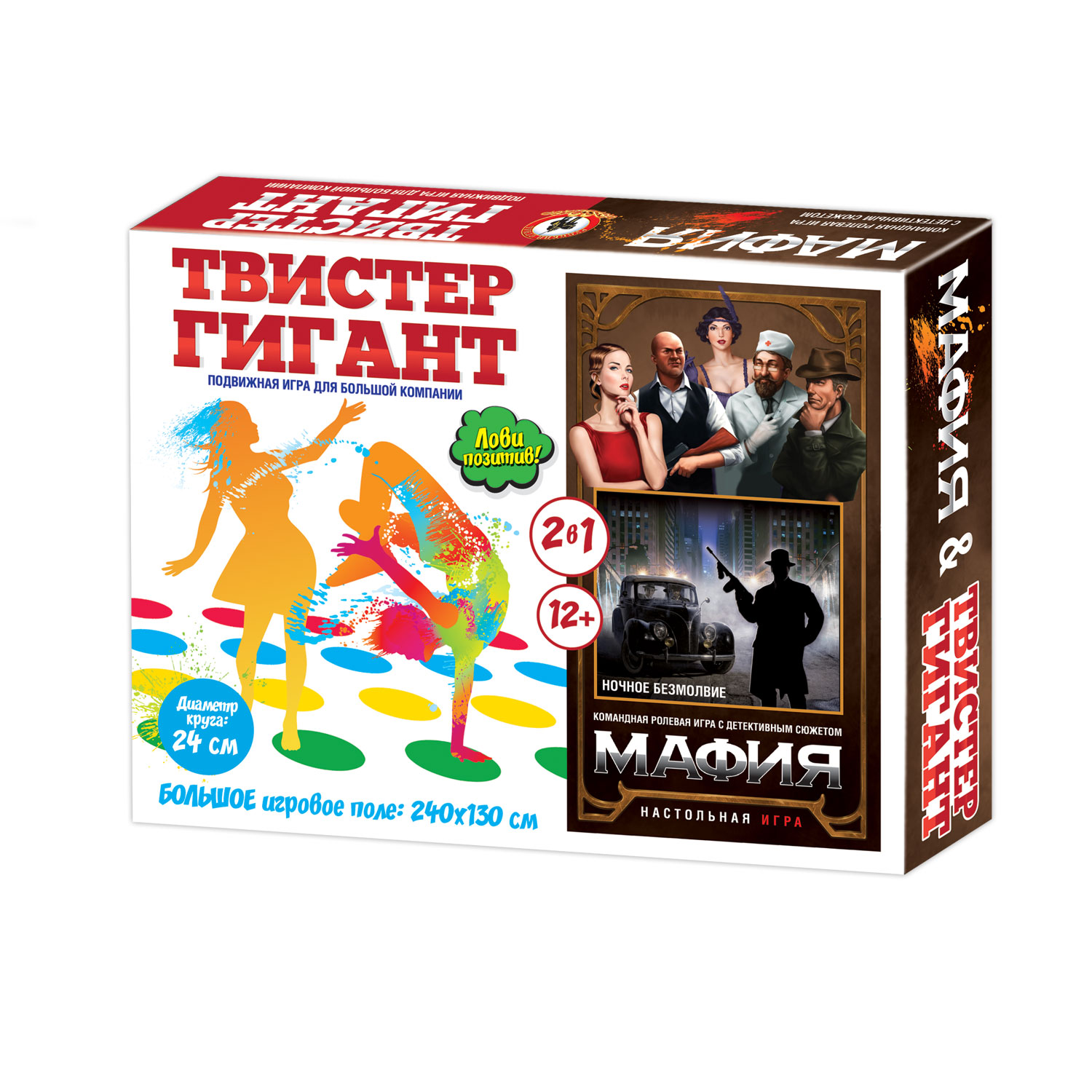 Этот набор включает в себя две самые популярные игры: Твистер ГИГАНТ и Мафию.
