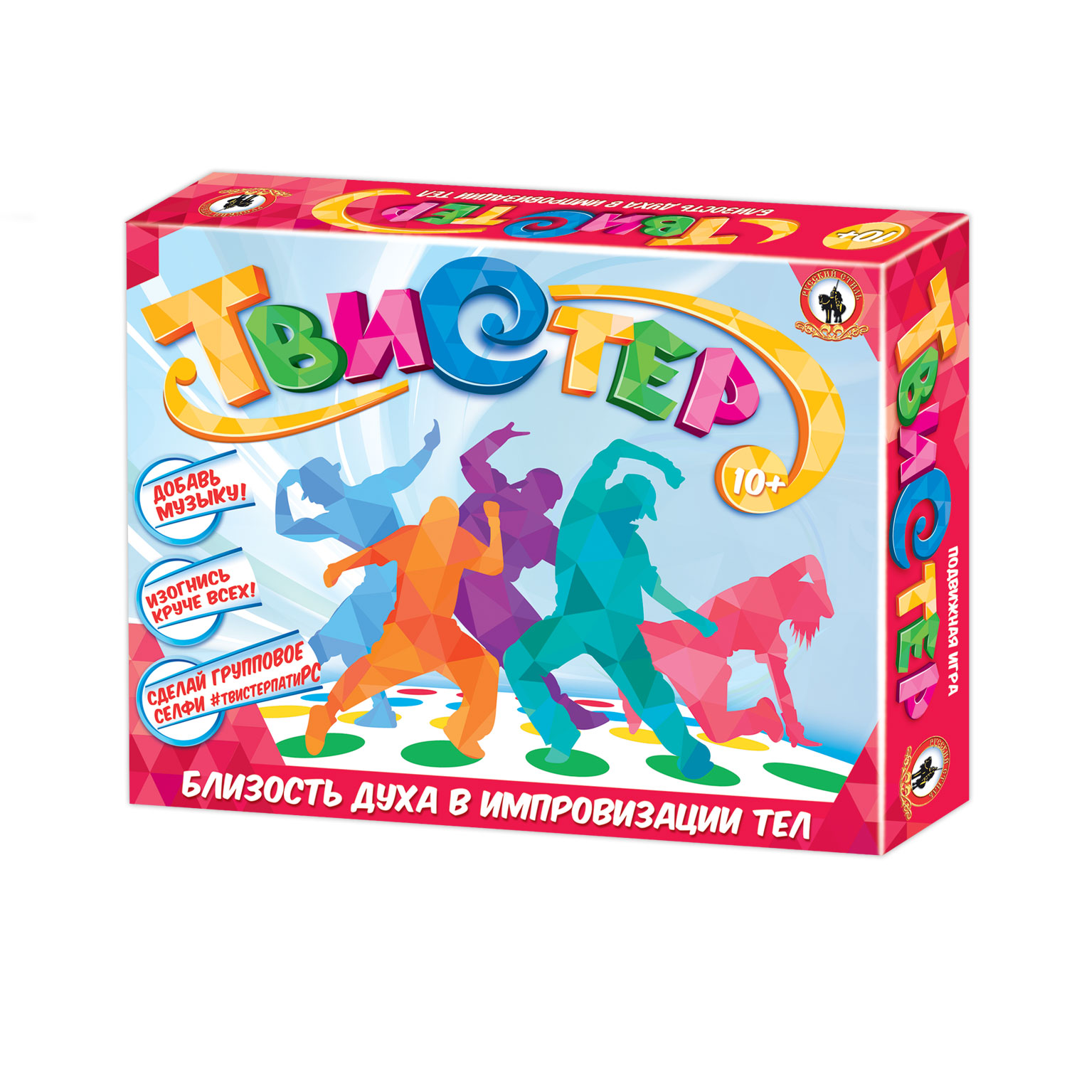 Твистер — это подвижная напольная игра; которая подойдёт не только для двух игроков; но и для большой компании! Играть в неё очень весело. В процессе игры нужно просто выполнять задания ведущего и не падать на игровом поле. Ведущий крутит стрелку по очереди для каждого игрока. Стрелка указывает какую руку или ногу игрок должен переставить и на какой цветовой круг. Помимо этого; на рулетке в каждом секторе есть два дополнительных задания. Если стрелка указала на сектор «Птичка» - игроку необходимо поднять указанную руку или ногу; а если стрелка попала на сектор «Восклицательный знак»; то ведущий придумывает дополнительное задание по своему усмотрению: прочитать стихотворение; похвалить другого игрока; рассказать шутку и т.д. Тот; кто не смог удержать равновесие в процессе игры – выбывает. Выигрывает тот; кто оказался самым устойчивым и не упал на игровом поле. Чем больше участников; тем игра становится азартнее и веселее! Всё; что понадобится для игры – это немного места для напольного коврика и 20-30 минут на партию. Количество игроков для игры в Твистер: от 2 до 4.