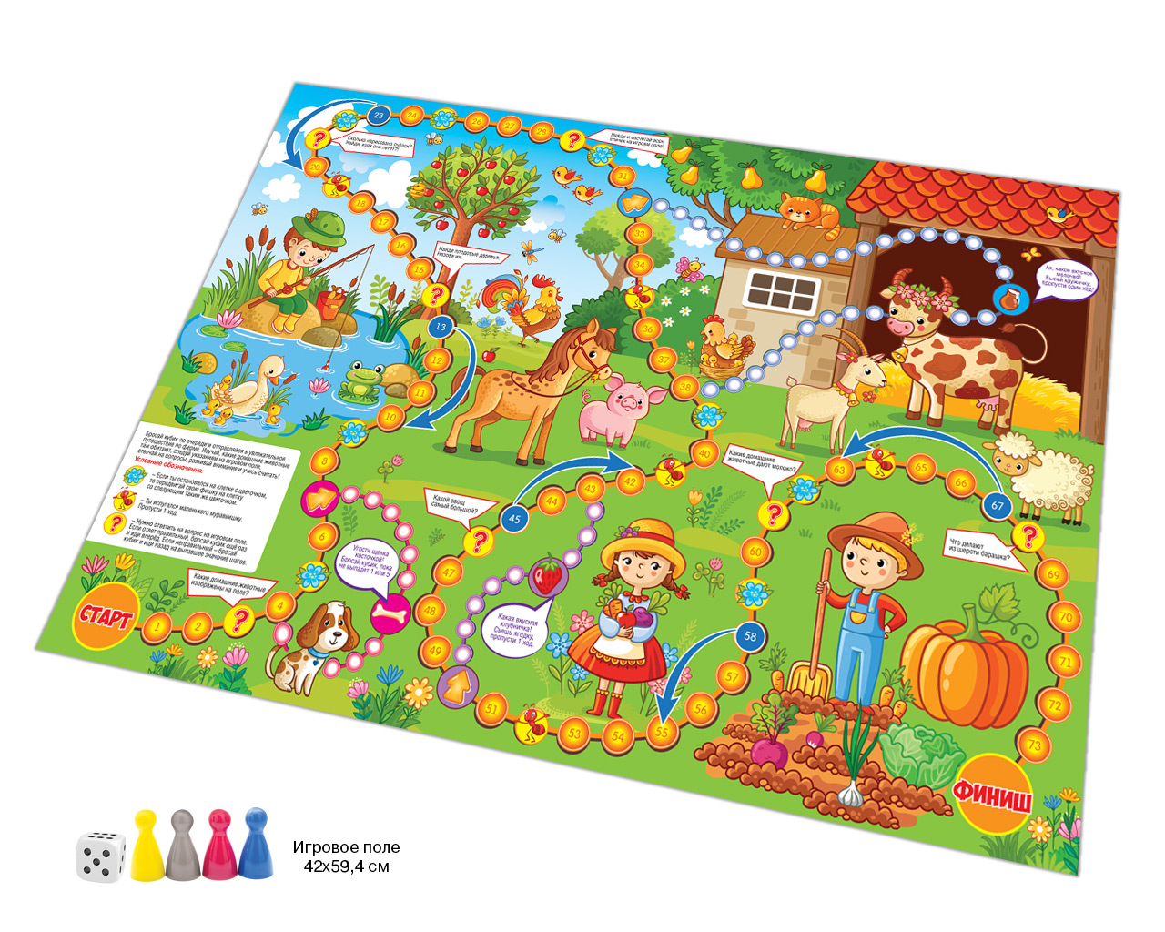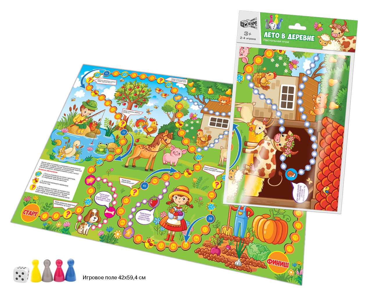 Увлекательная игра-ходилка в пакете с хеддером с 4-мя фишками необычных цветов (серебристый, малиновый, королевский синий, ярко-желтый). Увлекательная и понятная всем игра, которую легко взять с собой в поездку. Яркое большое игровое поле 594х420мм.