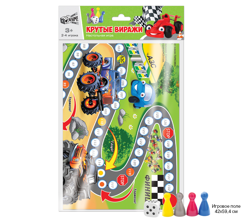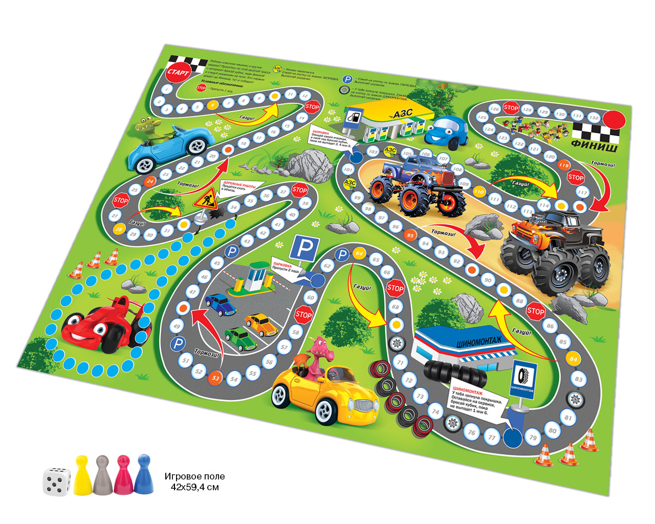 Увлекательная игра-ходилка в пакете с хеддером с 4-мя фишками необычных цветов (серебристый, малиновый, королевский синий, ярко-желтый). Увлекательная и понятная всем игра, которую легко взять с собой в поездку. Яркое большое игровое поле 594х420мм.