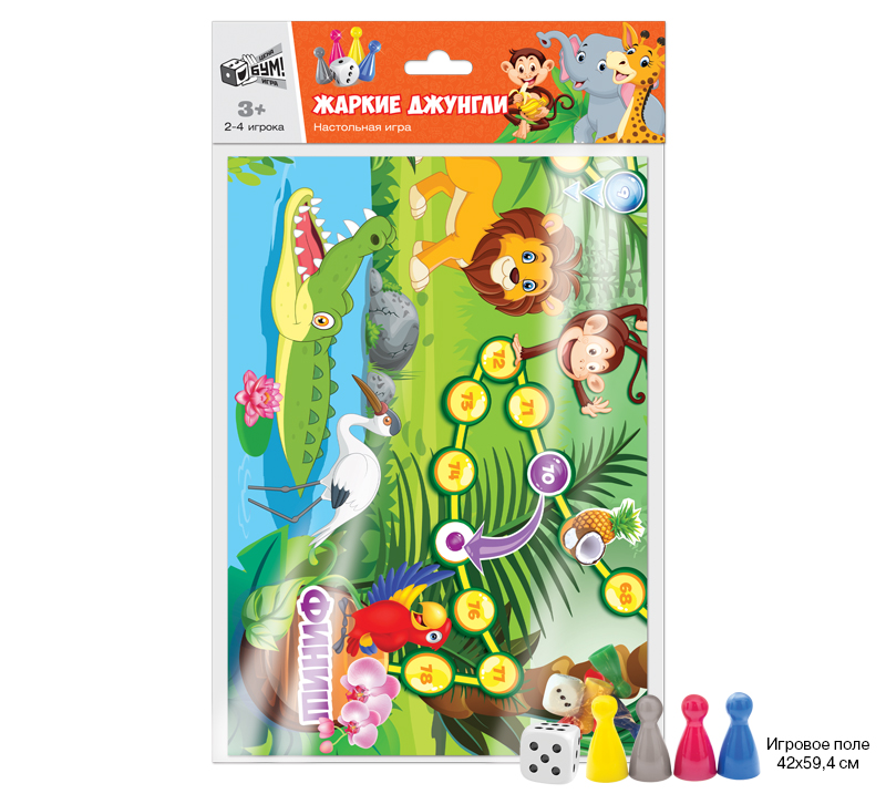 Увлекательная игра-ходилка в пакете с хеддером с 4-мя фишками необычных цветов (серебристый, малиновый, королевский синий, ярко-желтый). Увлекательная и понятная всем игра, которую легко взять с собой в поездку. Яркое большое игровое поле 594х420мм.