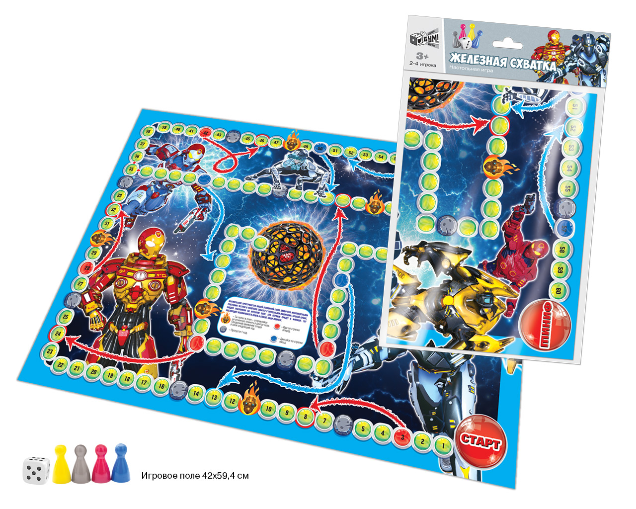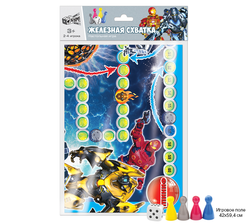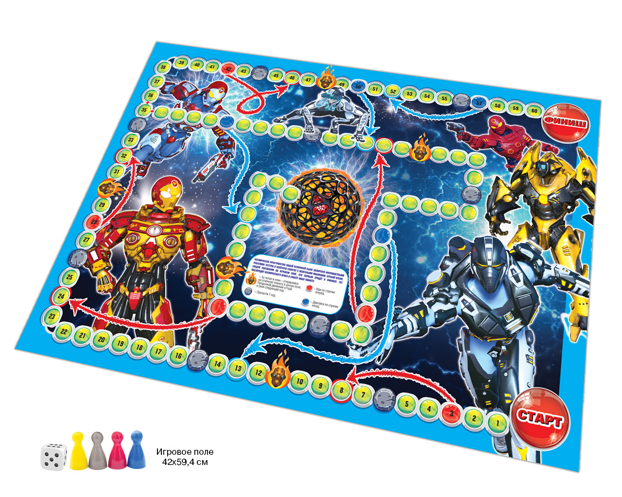 Увлекательная игра-ходилка в пакете с хеддером с 4-мя фишками необычных цветов (серебристый, малиновый, королевский синий, ярко-желтый). Увлекательная и понятная всем игра, которую легко взять с собой в поездку. Яркое большое игровое поле 594х420мм.