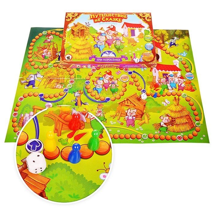 Соверши увлекательное путешествие в сказку! Проведай любимых героев; помоги поросятам убежать от коварного волка! Выигрывает тот; кто первым дойдёт до финиша. Игра развивает логическое мышление; реакцию; мелкую моторику; учит детей считать. Играя; дети весело проведут время.