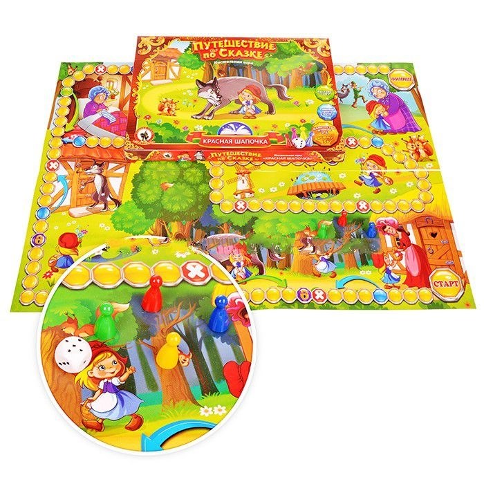 Соверши увлекательное путешествие в сказку! Помоги девочке донести пирожки своей любимой бабушке и не попасть в лапы серого волка! Выигрывает тот; кто первым дойдёт до финиша. Игра развивает логическое мышление; реакцию; мелкую моторику; учит детей считать. Играя; дети весело проведут время.¶В наборе красочное игровое поле размером 420х594 мм; кубик и 4 фишки.¶Материал: картон; пластик. Для детей от 3-х лет. Игра предназначена для 2 - 4 игроков.