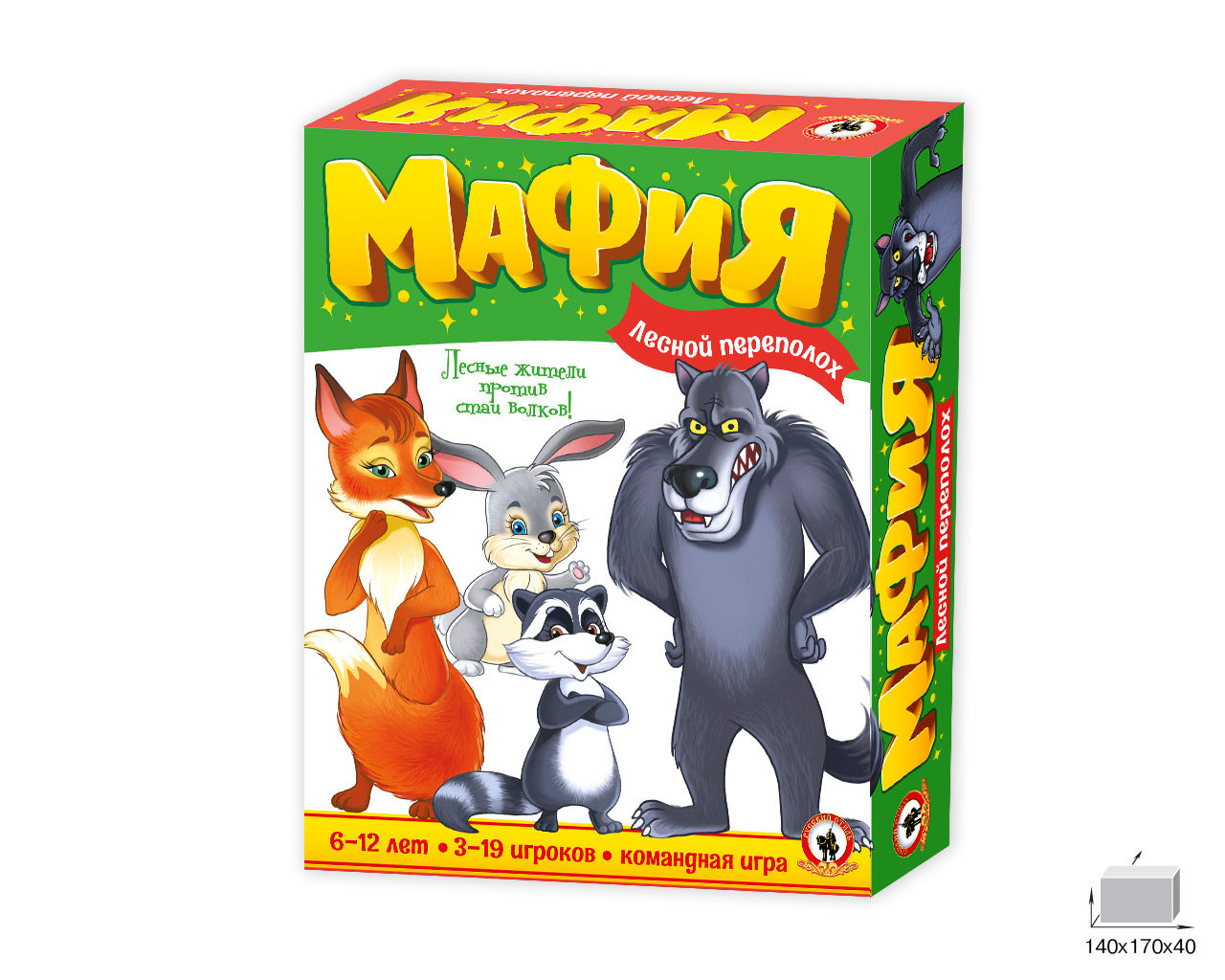 Этот вариант всеми известной игры «Мафия» создан специально для детей младшего возраста. Игрокам предстоит стать участниками таинственной лесной истории: в лесу разбушевалась стая волков, и лесные звери сильно напуганы. Удастся ли Егерю призвать к ответу злых хищников, а добрым зверюшкам перестать дрожать от страха по ночам и вернуться к прежней весёлой и беззаботной жизни. Лесные звери против стаи волков, кто же победит? ¶Игра подойдет для группы детей от 6-18 человек в возрасте 6-ти лет и старше и станет отличным развлечением на празднике.¶Карты – 18 шт. правила.