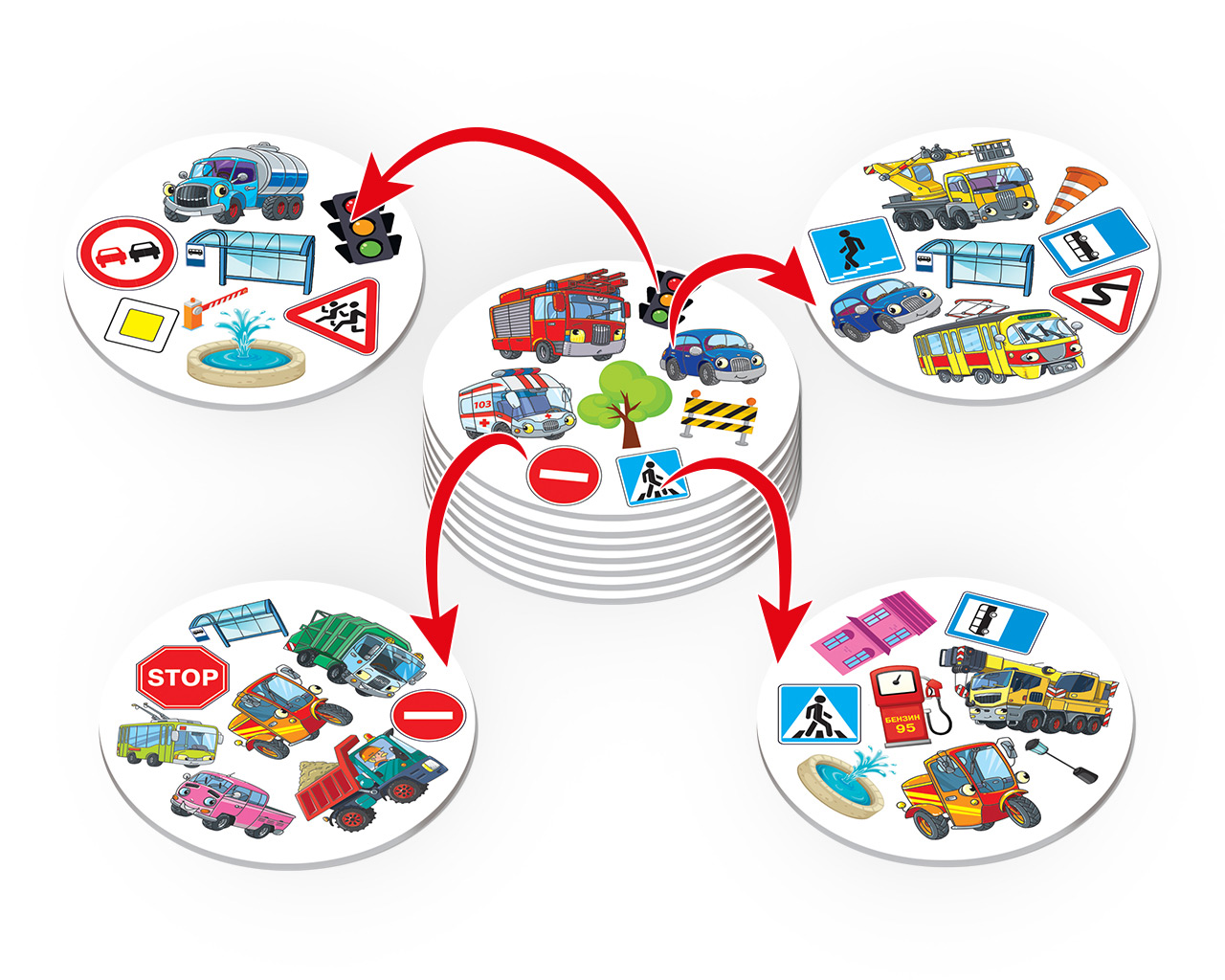 «Дублик» – это игра; которая сможет развеселить и увлечь каждого! В комплекте карточки с разным набором картинок. Игрокам необходимо найти совпадающие изображения быстрее всех. В процессе игры участники познакомятся с различными видами транспорта и изучат основные дорожные знаки; а поможет в этом буклет-подсказка с описанием дорожных знаков и названиями машин. В правилах описаны несколько вариантов игры. Память; скорость и внимание – Ваши главные помощники. Вперёд за победой! Игра подойдет для 2-6 игроков.