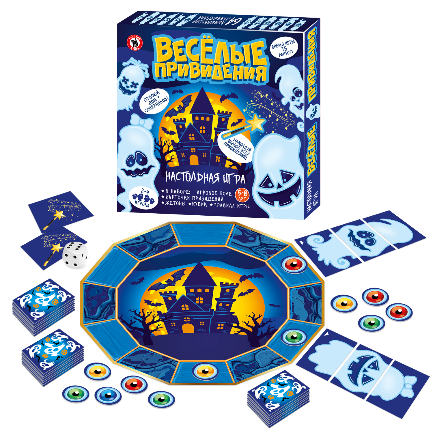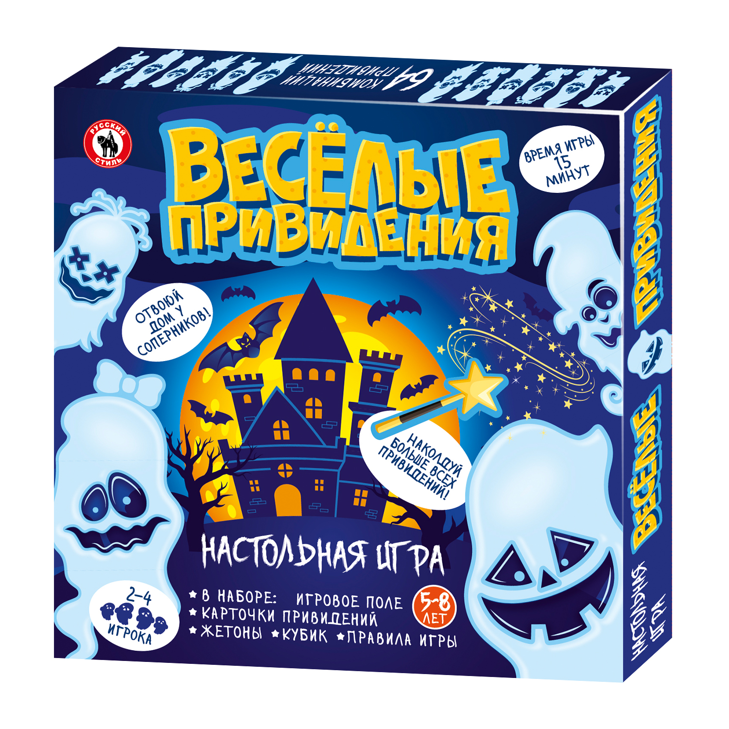 Тёмной-претёмной ночью в заброшенном доме собрались весёлые заколдованные привидения! Они совсем перепутались между собой и выглядят почти как близнецы. Взмахнув волшебной палочкой, игрокам предстоит расколдовать как можно больше привидений и стать хозяином дома! Цель игрока – собрать как можно больше непохожих друг на друга привидений, состоящих из трех карточек. А в конце игры привидения могут устроить битву за дом. Игрок выбирает привидение, с которым он желает сразиться. Игроки бросают кубики, у кого выпало больше – побеждает в битве, проигравшее привидение убирается с поля. В ходе игры игроки потренируют логику, внимание, научатся сравнивать числа. Количество игроков: 2-4 Возраст: 5-8 лет Состав игры: игровое поле, кубик, карточки – 50 шт., жетоны – 48 шт., правила игры. Материал: картон, бумага