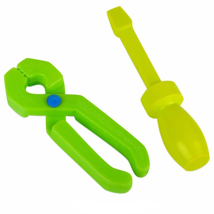 Настоящий мастер всегда готов помочь папе в нелегких мужских обязанностях; а с набором самых важных инструментов он всегда будет во всеоружии. Крепкие плоскогубцы и удобная отвертка станут незаменимыми помощниками в домашних делах; дачном строительстве и даже автомобильном ремонте. С их помощью малыш научится правильно пользоваться инструментом и сможет почувствовать себя сильным и умелым; что так важно для маленьких мальчиков!