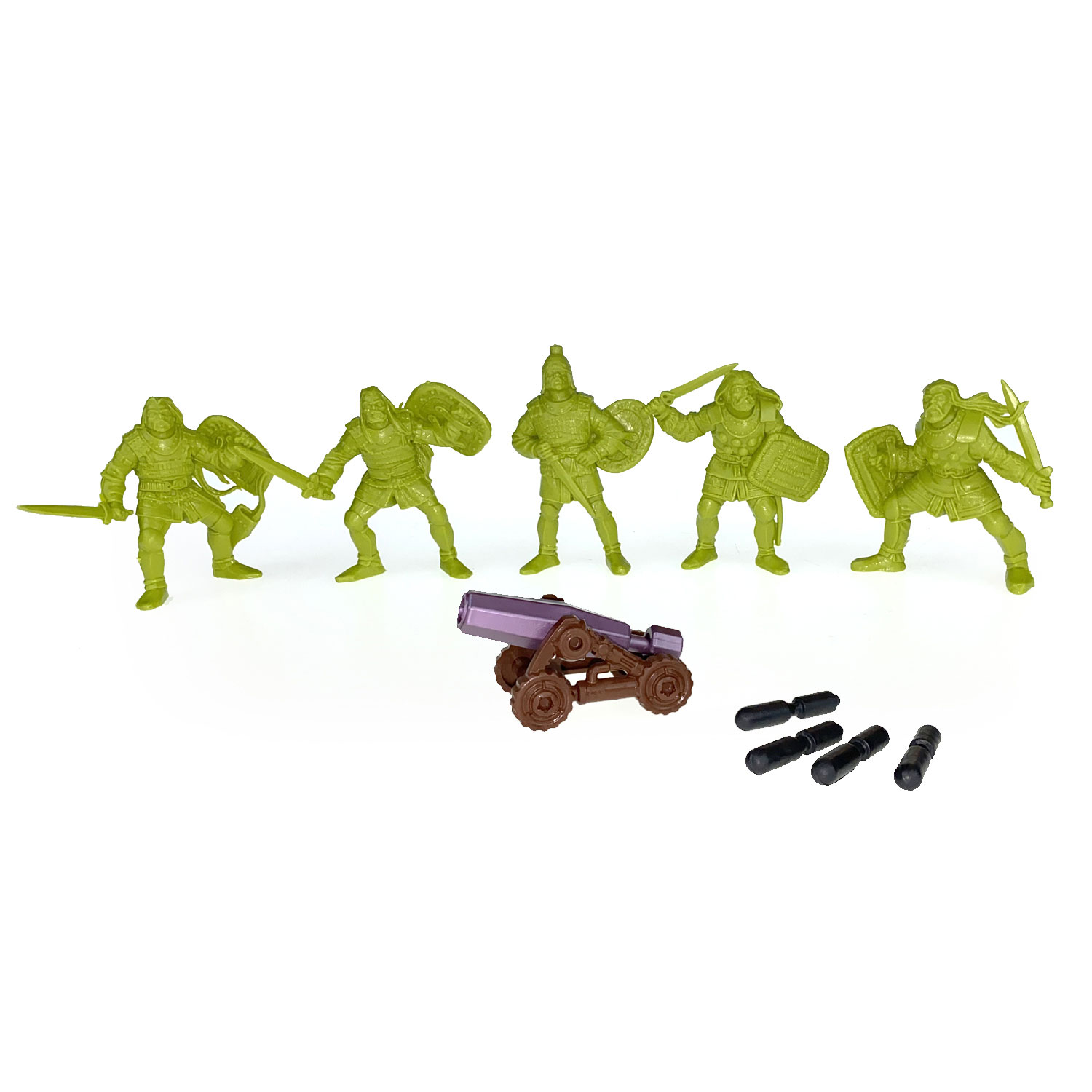 В комплект набора солдатиков входит 5 фигурок; пушка; стреляющая на 1;5 метра; и 4 снаряда. Фигурки выполнены из качественного пластика и имеют высоко детализированную прорисовку. Дети смогут рассмотреть все элементы одежды и оружия древних Скифов. С фигурками можно играть; устраивать сражения; коллекционировать; а собрав несколько разных отрядов; можно устроить настоящую битву.